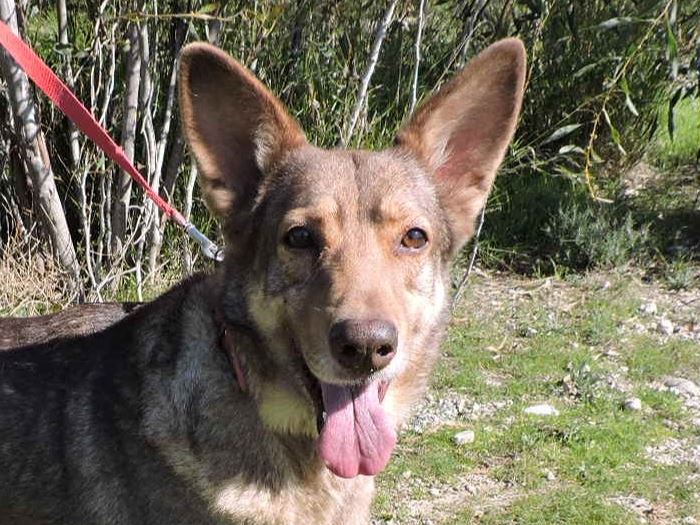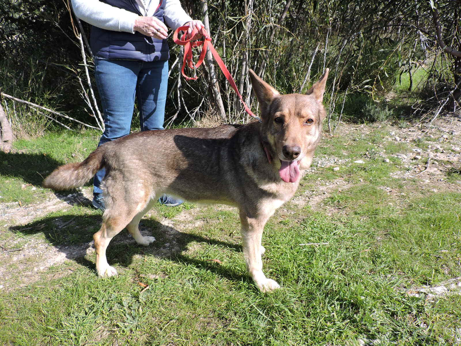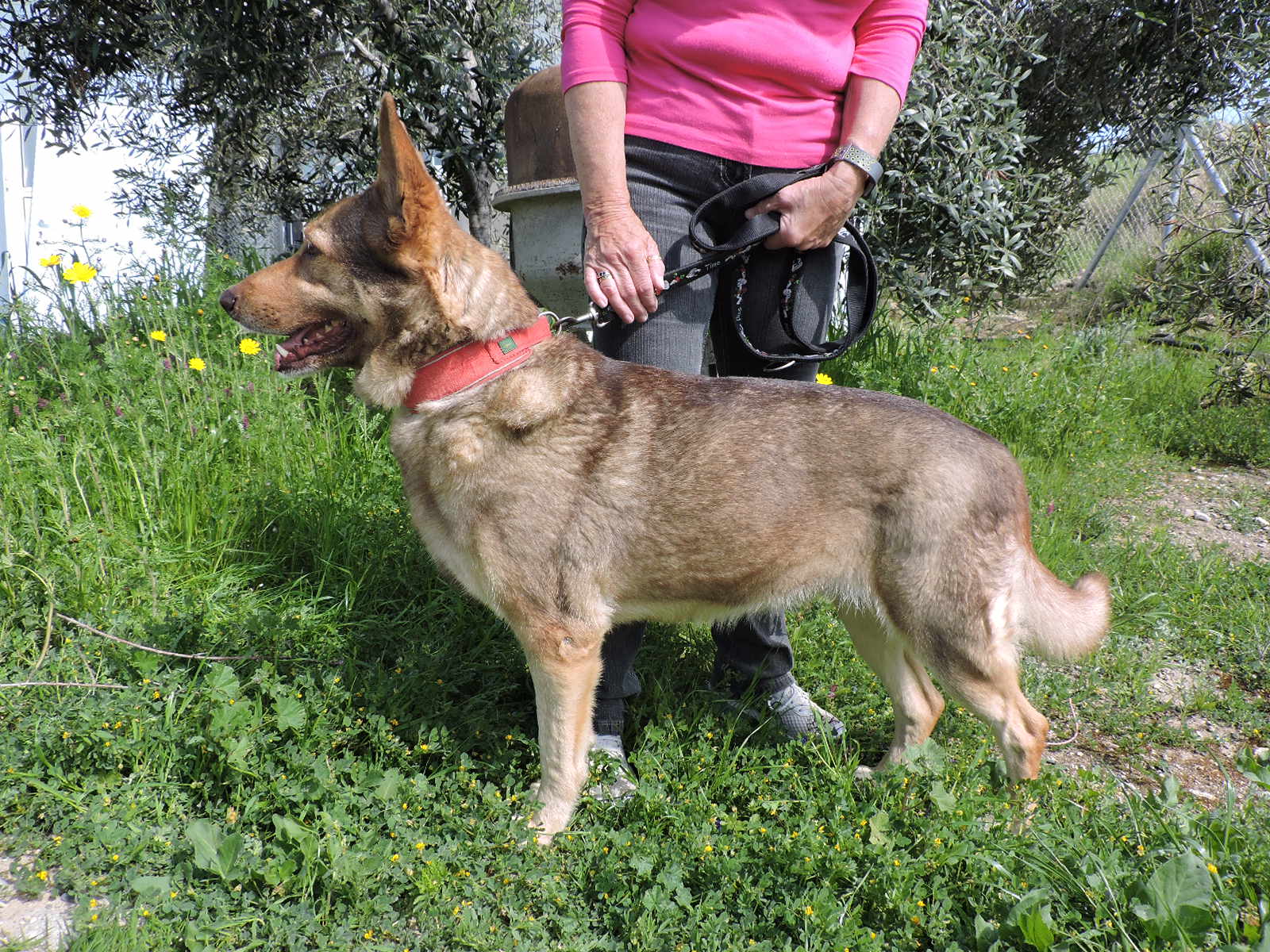 She is approx 7 years old but is in good health, apart from failing eyesight in one eye. She was originally brought to Argos with her puppies for their safety and wellbeing and has been overlooked for a long time.